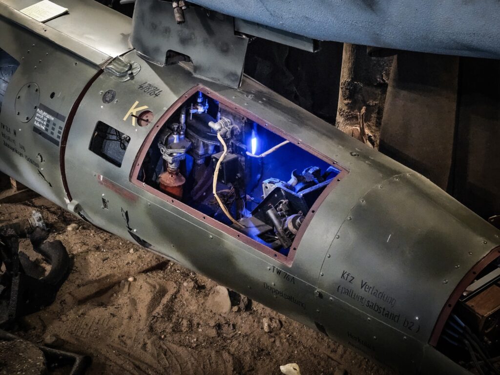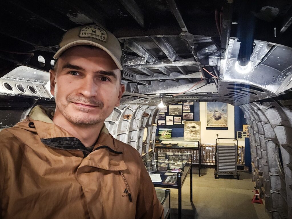 Co kryje wnętrze muzeum? Wystawa to przede wszystkim zbiór autentycznych szczątków maszyn wydobytych z okolicznej ziemi. Każdy eksponat opowiada konkretną historię: